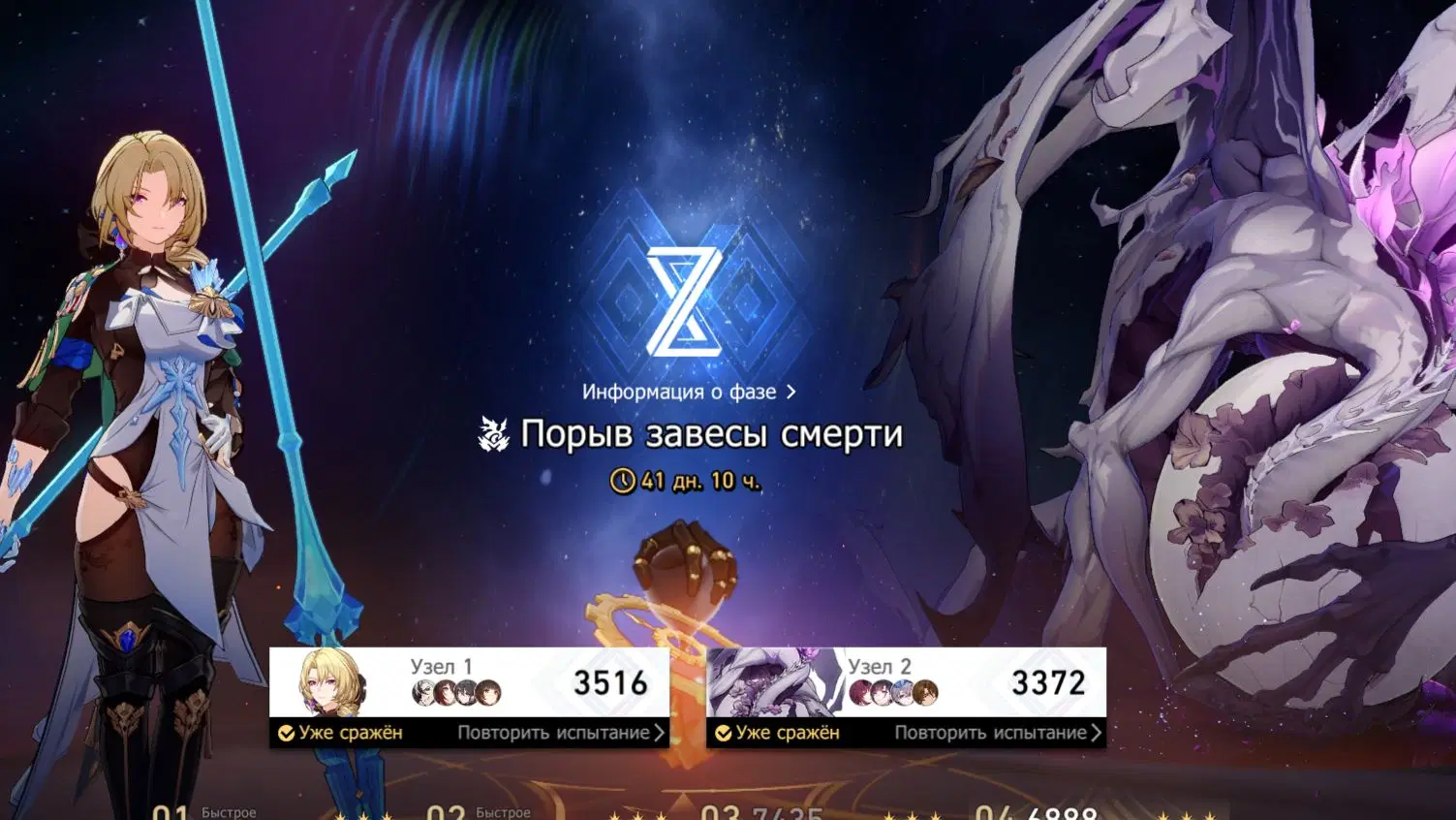 Знаете, этот пост и не планировался, ну тут уж я не могу не высказаться. Михойо, это что за... Какой белены вы там обожрались? Я уже на Арбитре понял, что должен был пожалеть, что не вытащил вашу глобальную пассивку + кислотную девочку-волшебницу с коняшкой, но. спасибо я пасс. А если серьезно, то пришлось изобретать какую-то дичь и брутфорсить без баффов это недоразумение (видимо конец патчей 3.х из этого будет и состоять).
