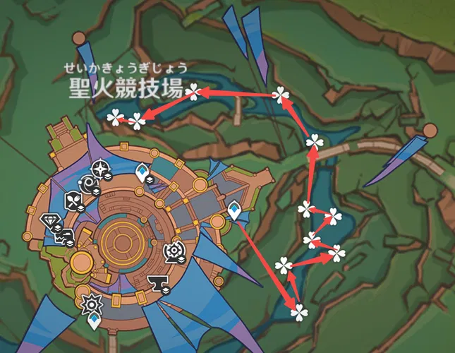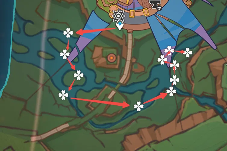 序文 Ⅴ5.1前半祈願は始まりました!新しい★5限定キャラシロネンもビックアップしました。好きな皆さんは待ちきれないのではないでしょうか?彼女の実力をより早く引き上げ、共に戦うためには、彼女の突破素材であるシャクギクが不可欠です。そこで今日は、シャクギクの効率的な採集ルートについて一緒に学びましょう! マップ標識 四つ葉のクローバーマーク:文章の収集目標。 採集コツ Ⅴ5.0は新たな機能が追加され、旅人の皆さんが必要な地域の特産をより早く採集できるようになりました。採集したい特産を選択して「採集ポイントへ」をクリックすると、マップに