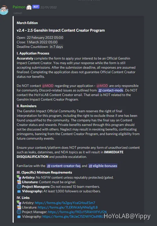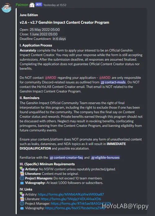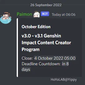 [Closed] v2.4 - v2.5 Genshin Impact Discord Content Creator Program from Genshin Impact Official Discord Server