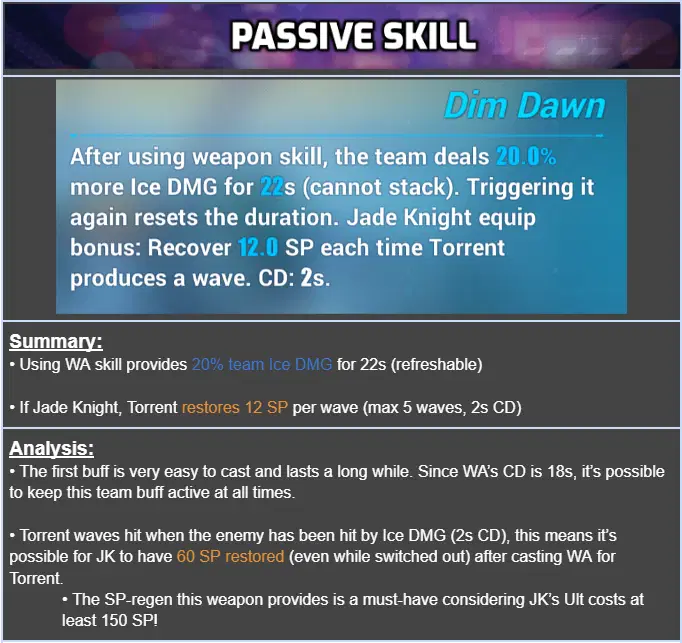 Hey, Captains! Today we are going to be taking a look at the 5★ gacha Gauntlet weapon, Nocturnal Stealth, introduced in v6.1. Nocturnal Stealth is a Ice-DMG Gauntlet-type weapon designed for Jade Knight. In this guide, we will review the weapon’s functionalities and where it excels best at. For the sake of convenience, the following will be abbreviated in this guide: