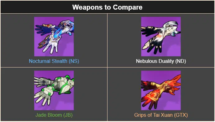 ✦ WEAPON COMPARISON ✦