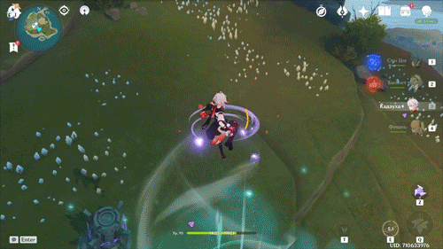 Прежде всего, Казуха отличается от своих ветерочков собратьев и сосеструх тем, что может давать бонусы элементального урона другим персонажам. Всего один пук любым элементом, один прыжок Казухи, и у ваших персонажей моментально появляются двадцать кубиков пресса.