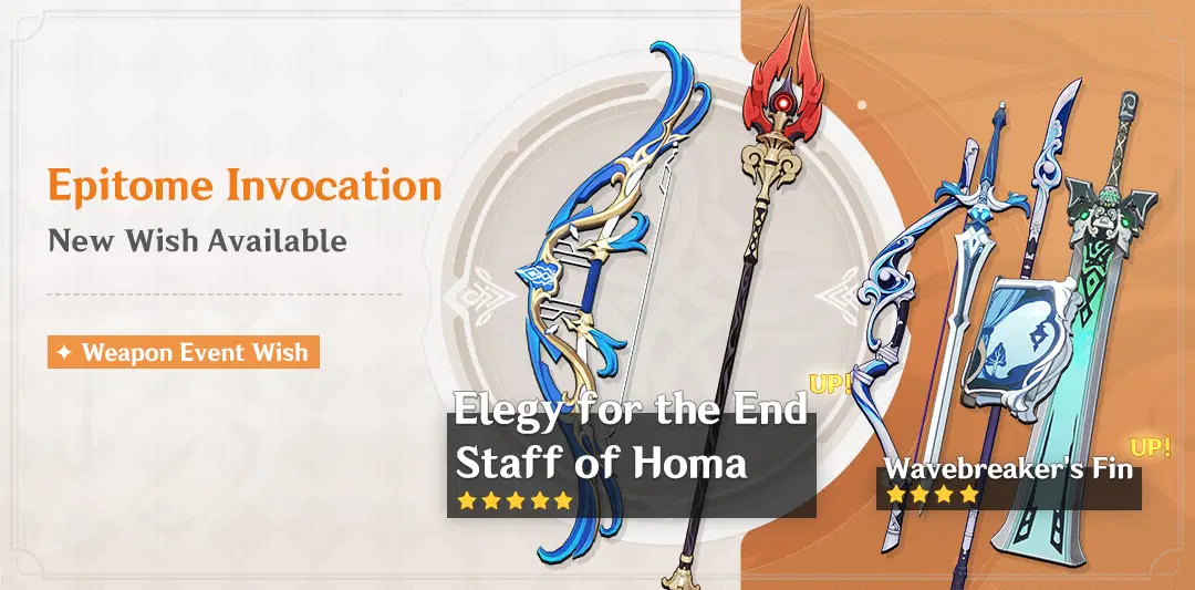 ● During the event, the event-exclusive 5-star weapons Staff of Homa (Polearm) and Elegy for the End (Bow) will receive a huge drop-rate boost!