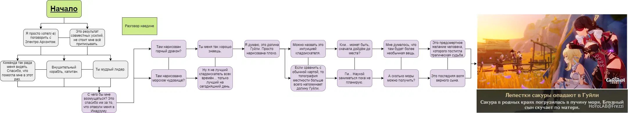 Фиолетовым цветом отмечен путь для концовки "Лепестки сакуры опадают в Гуйли"
