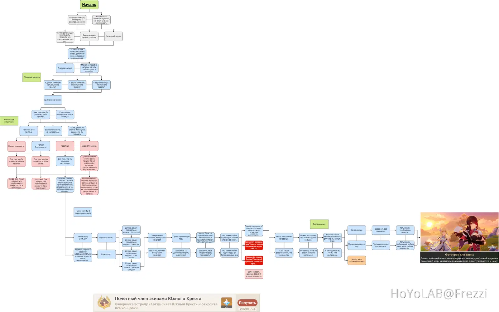 Синим цветом отмечен путь для концовки "Фотоурок для двоих"
