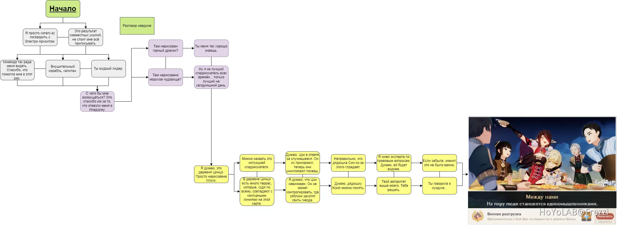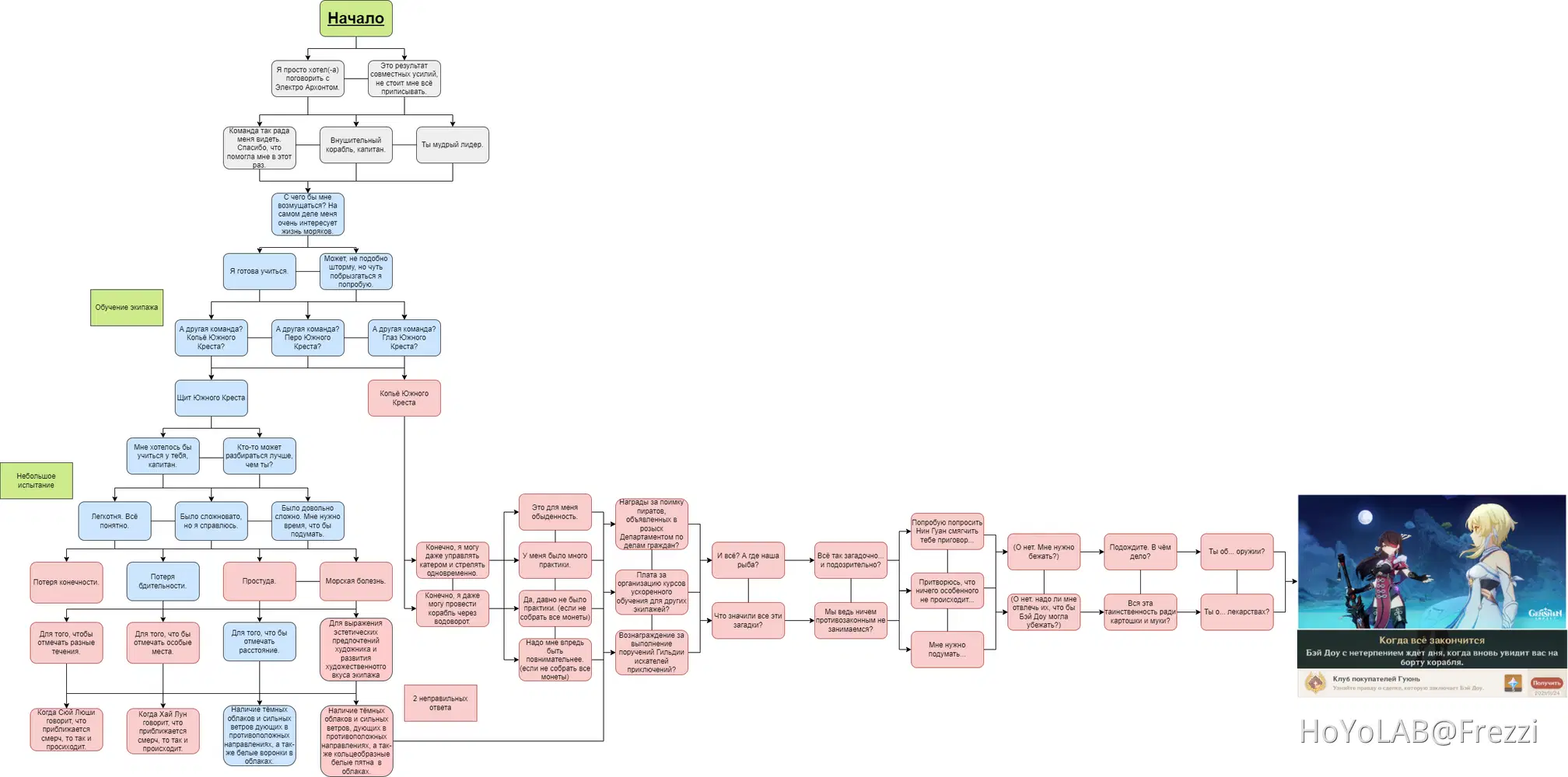 Ниже я прилагаю полную ветку диалогов, выполненную в Блок-схеме.