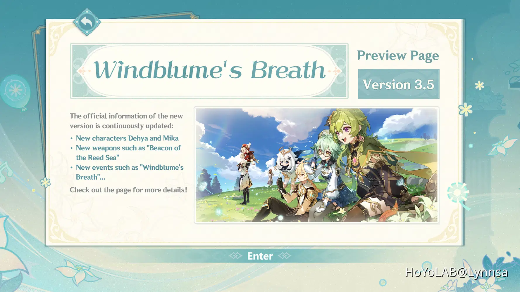 Genshin Impact Version 3.5 - "Windblume's Breath" Preview Page