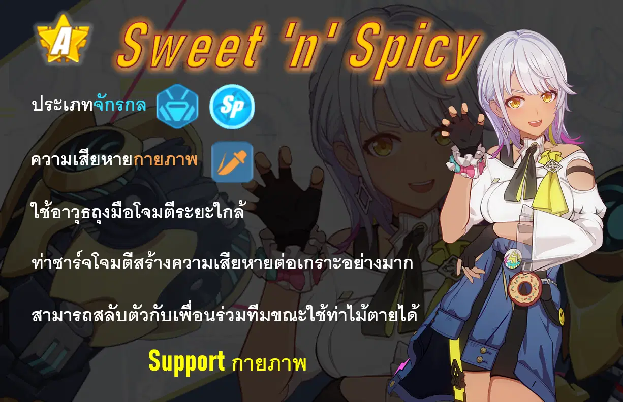 [emoji]สวัสดีกัปตันทุกท่าน ยินดีต้อนรับสู่บทความแนะนำตัวละคร Sweet 'n' Spicy ที่เข้ามาในเวอร์ชัน 5.3 นี้ บทความนี้จะนำเอาข้อมูลความสามารถของเธอมาสรุปให้เข้าใจง่าย พร้อมแนะนำทีม อุปกรณ์ และวิธีเล่นคร่าว ๆ ให้ด้วย
