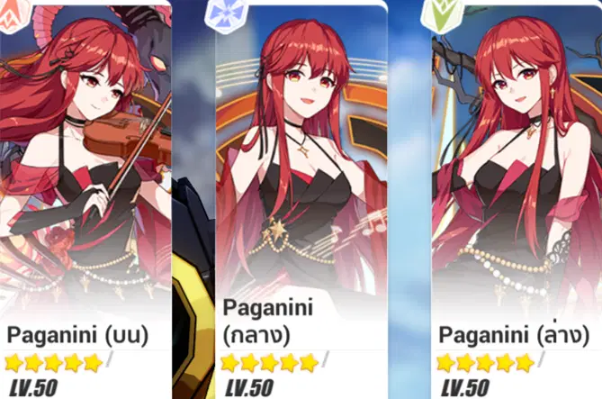 Theresa: Gluttony: เมื่อผู้ใช้โจมตีจะดรอปไอเทมลูกกวาด เมื่อเก็บจะทำให้ทั้งทีมสร้างความเสียหายทั้งหมดเพิ่มขึ้น