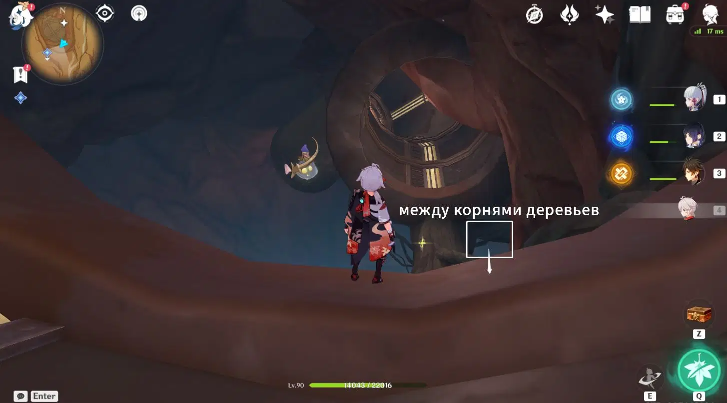 Посмотрите на юго-запад карты и летите вниз между корнями деревьев, как указано на карте.