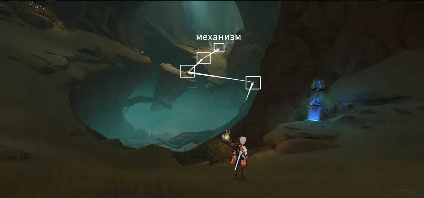 Потом двигайтесь на запад по карте, чтобы открыть механизм и избавьтесь от песка.