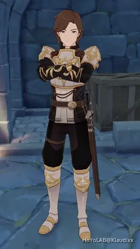 As you can see at the photo above, Huffman wears the standard uniforms of the Knights of Favonius.