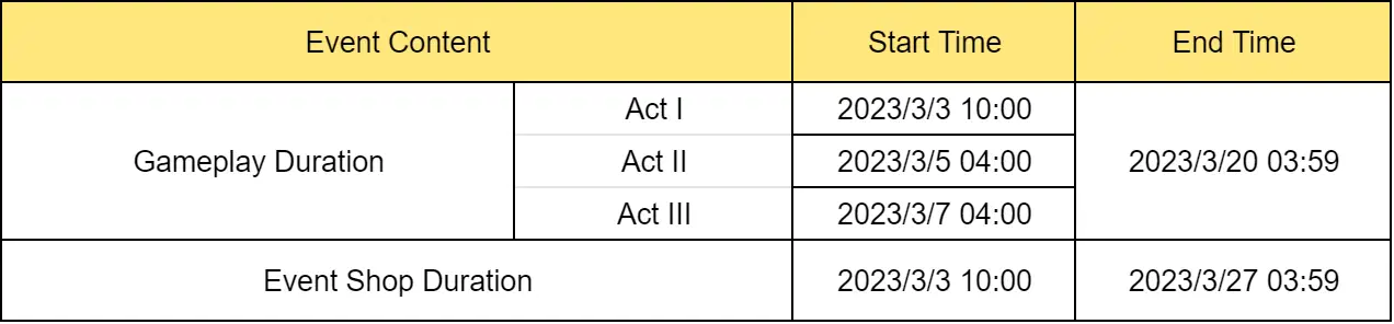 2023/03/03 10:00:00 – 2023/03/20 03:59:59