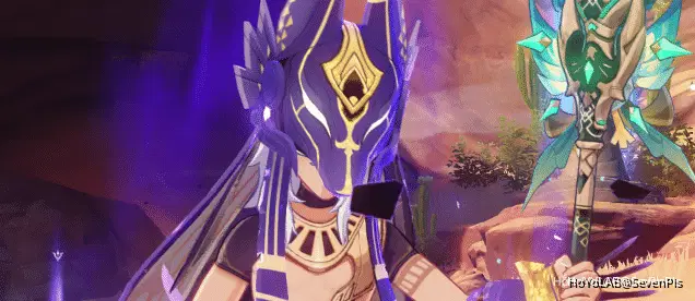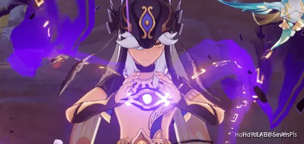 When Cyno is in the Burst state he will enter the Endseer stance at intervals (a big eye will pop on the screen as shown in the GIF above). If Cyno activates his Elemental Skill while affected by this stance, he will activate the Judication effect, increasing the DMG of this Elemental Skill by 35%, and firing off 3 Duststalker Bolts that deal 100% of Cyno’s ATK as Electro DMG.
