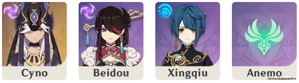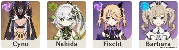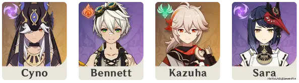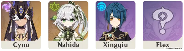 One slot will usually be an extra Electro unit to make sure Cyno has low energy problems. Fischl, Beidou, Yae, Dori, Kuki are all great options depending on what you need.