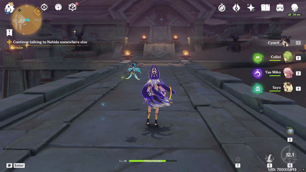 • After using Sacred Rite: Wolf’s Swiftness, Cyno’s Normal Attack SPD will be increased by 20% for 10s. If the Judication effect of his Passive Talent Featherfall Judgment is triggered during Secret Rite: Chasmic Soulfarer, the duration of this increase will be refreshed.