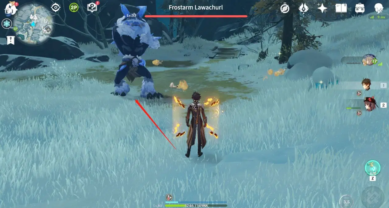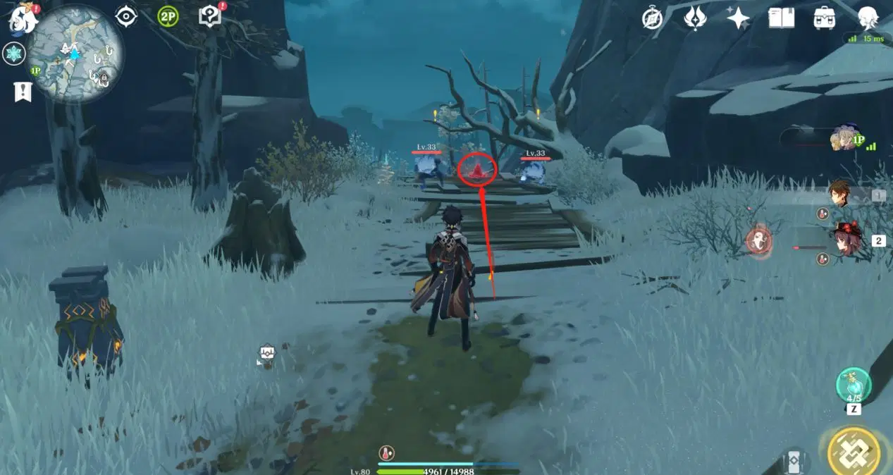 1. Considering the extreme climate in Dragonspine area, it’s better to have a Pryo character in your team to set campfires and reduce Sheer Cold.