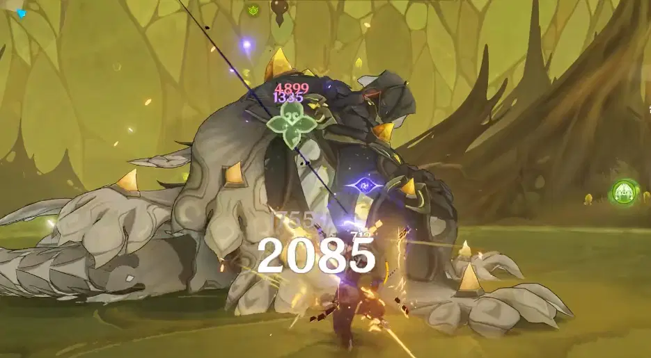 Модель атаки: Его цель является ядром, выпустит Дендро снаряд для атаки.