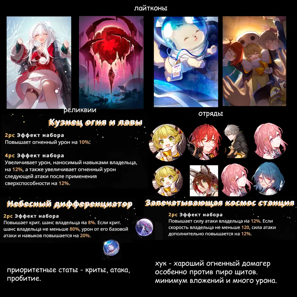 - талант - при атаке цели со статусом горение наносит доп 100% атаки в качестве огненного урона и восстанавливает 5 ед энергии.