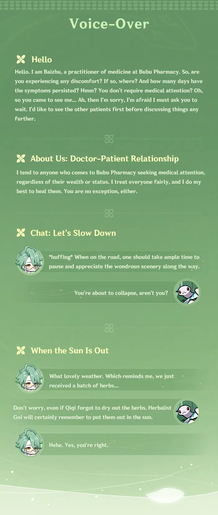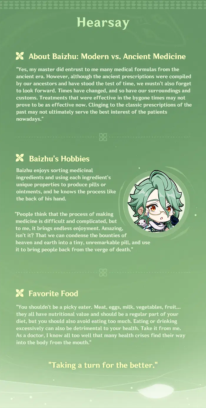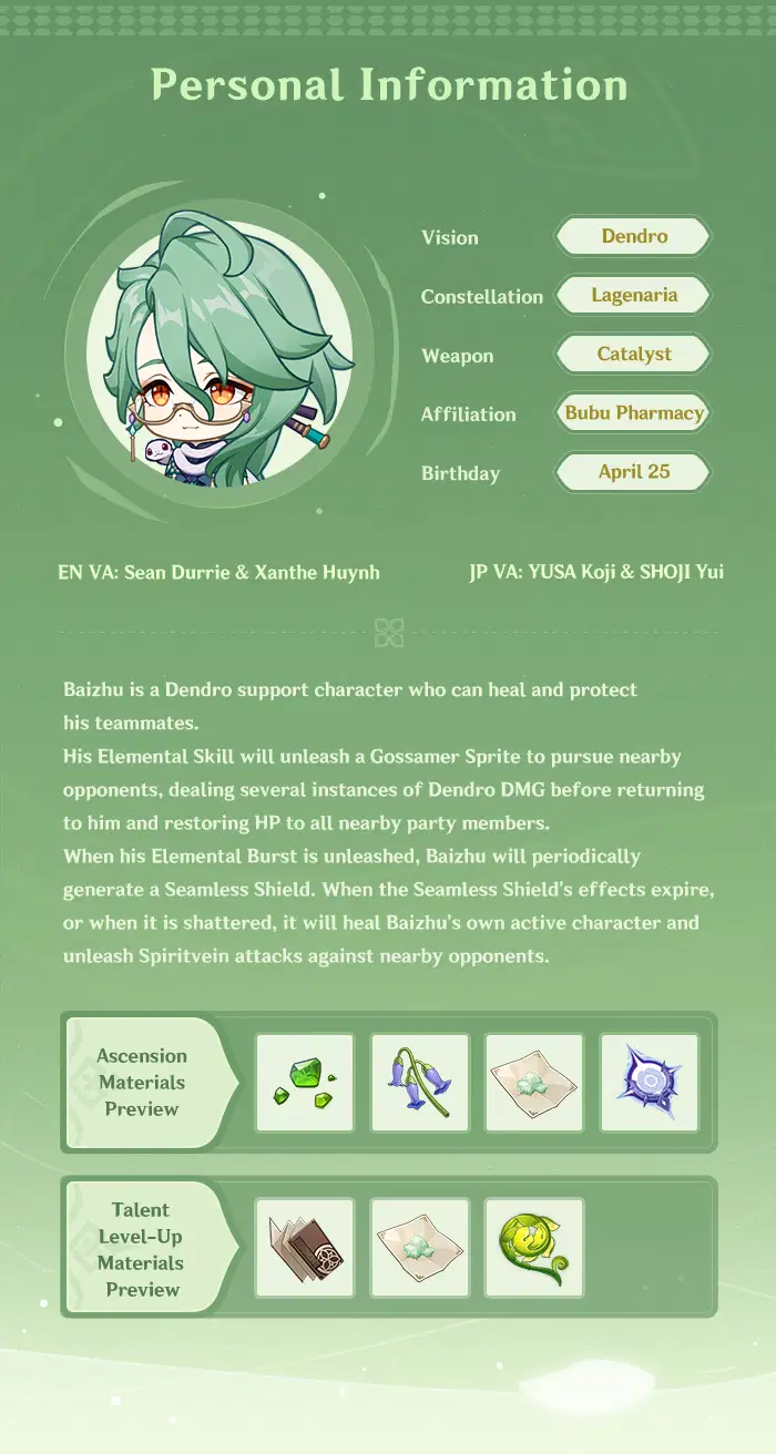 Hello, Travelers~ Today, we will be introducing a new character, Baizhu!