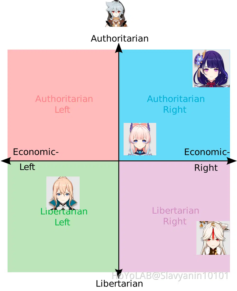Я отношу протестующих инадзумцев к Анархо-Центристам с легким уклоном в монархию. Анархисты-центристы — довольно смешное словосочетание, учитывая безразличие центристов к политике, но я могу объяснить такой выбор слов.