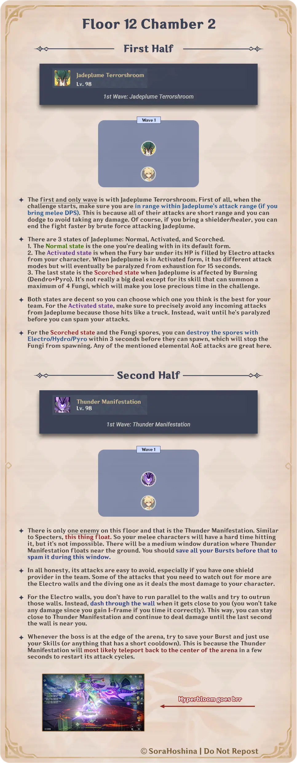 Wait until Thunder Manifestation stays put for a while before spamming all your Elemental Burst. If it's floating far too high from your melee character, save your Burst and wait for the right time.