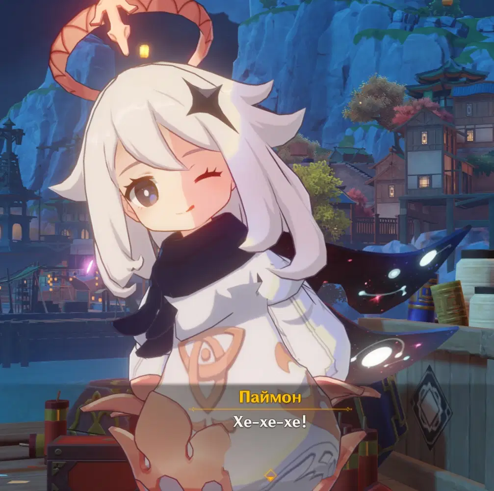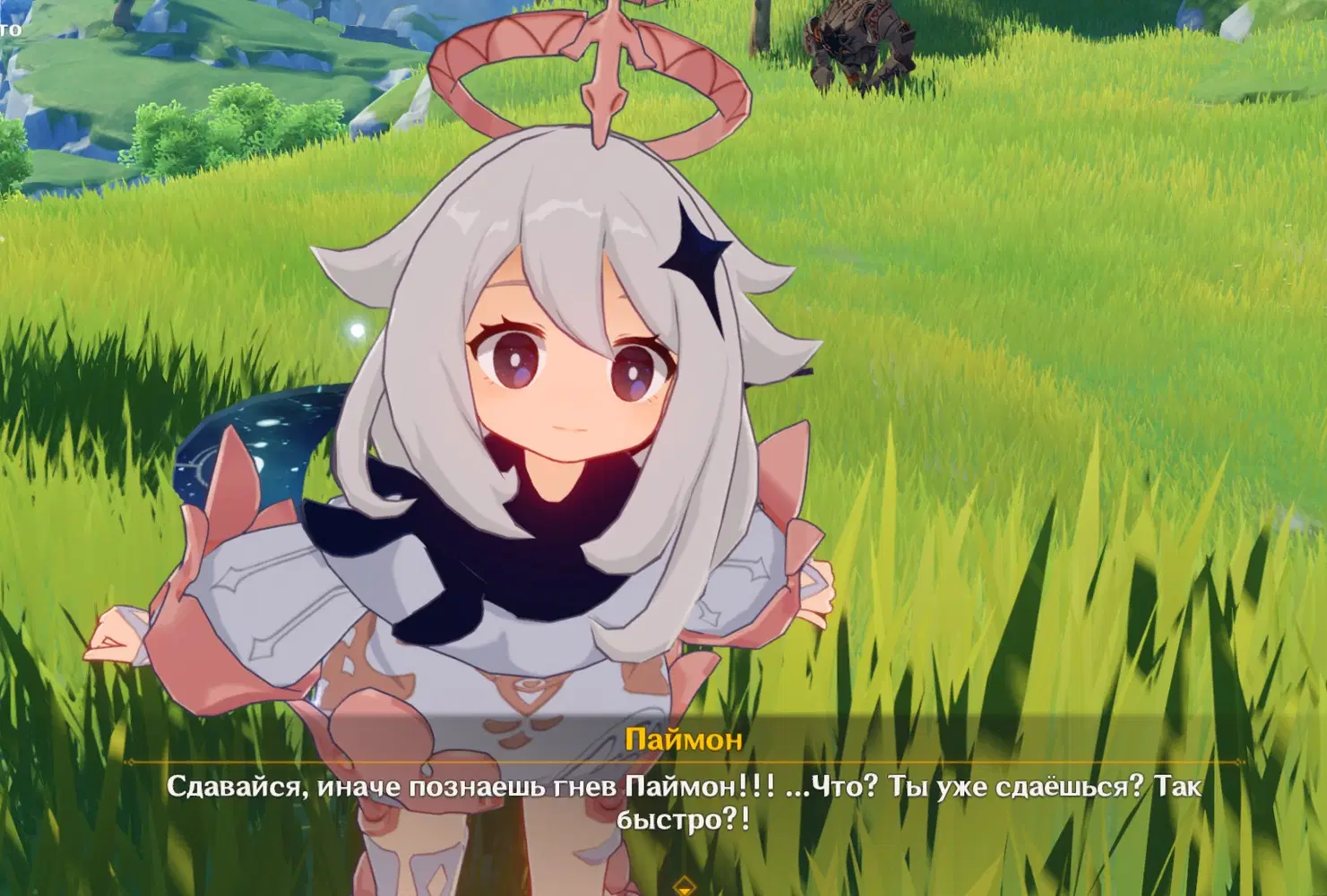 Паймон ничего не говорит о себе. А сценарий ловко сделал нашего героя полным
