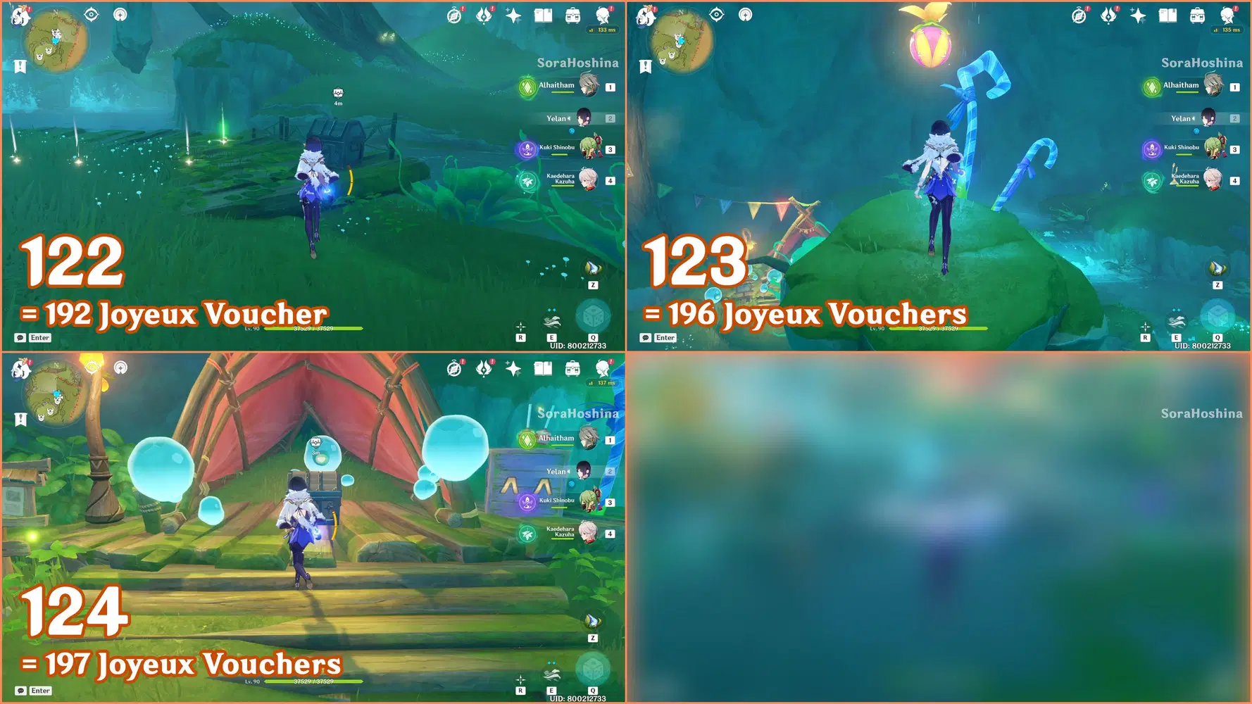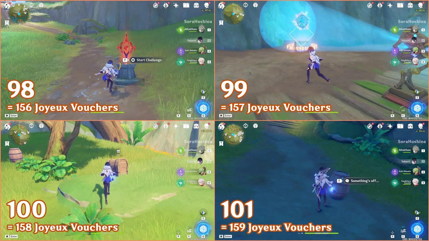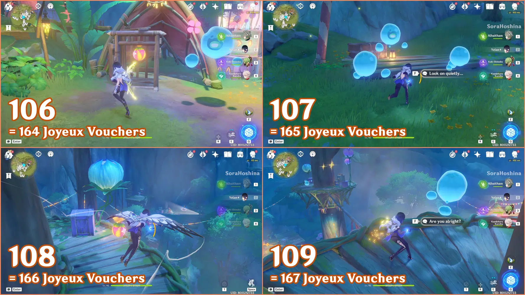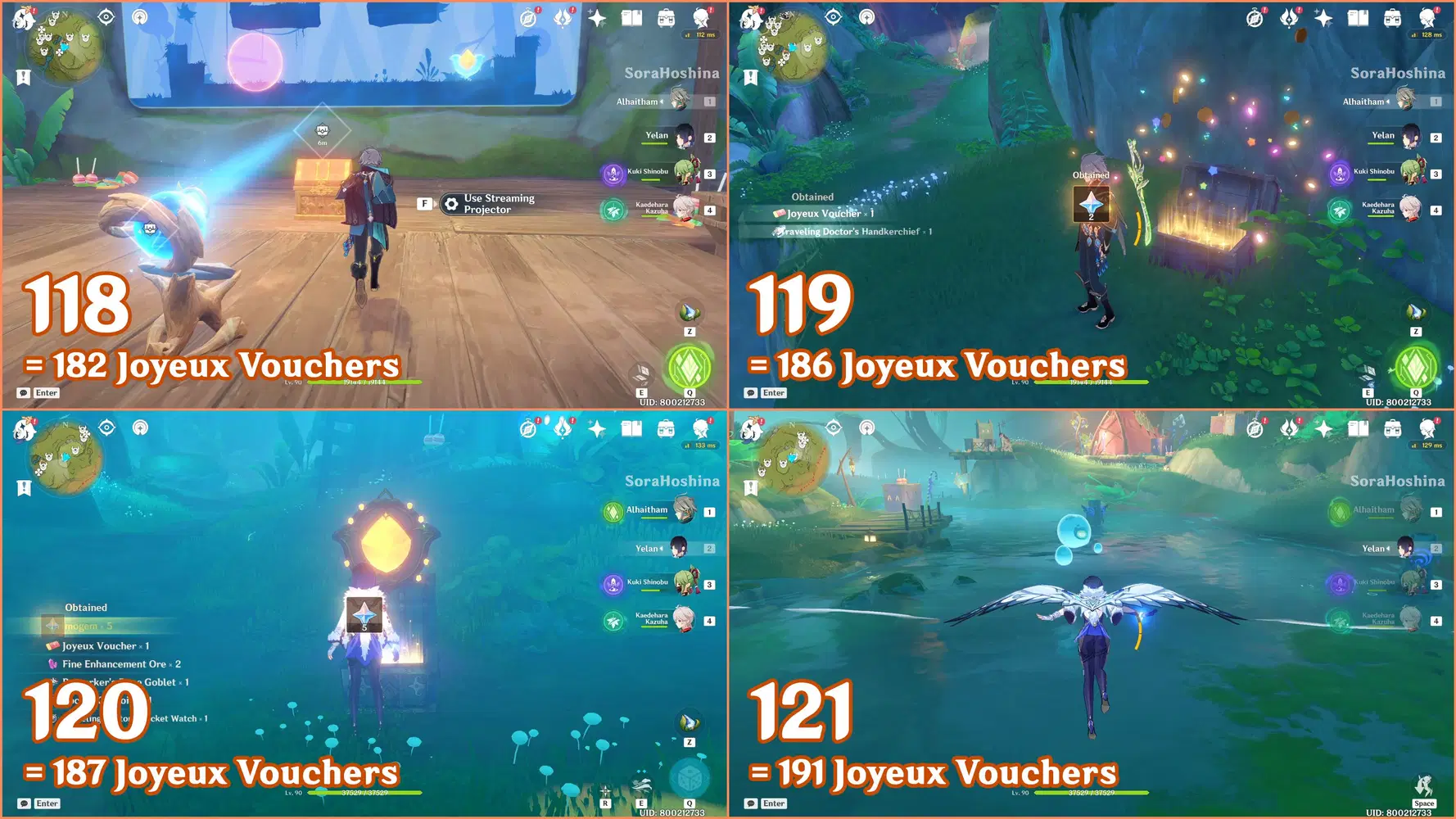 ✦ If you followed my first part of the Joyeux Voucher guide, you should have 155 Joyeux Vouchers and Flowing Joyspar gadgets. Remember that this gadget can help you find Fascinating Chests and Voucher Boxes in AoE areas.