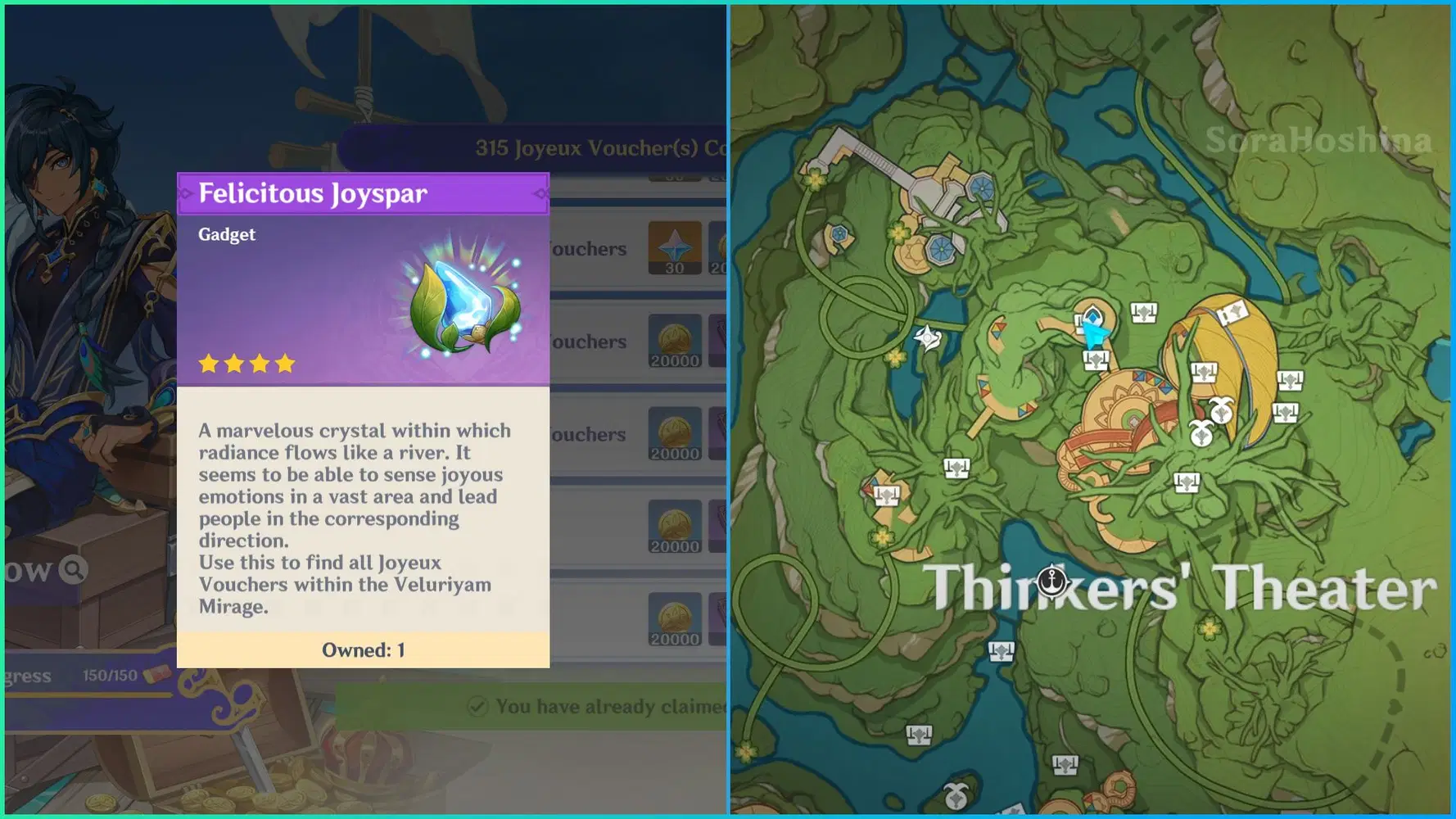 Felicitous Joyspar gadget on the left | Shows chests/vouchers icon on the map