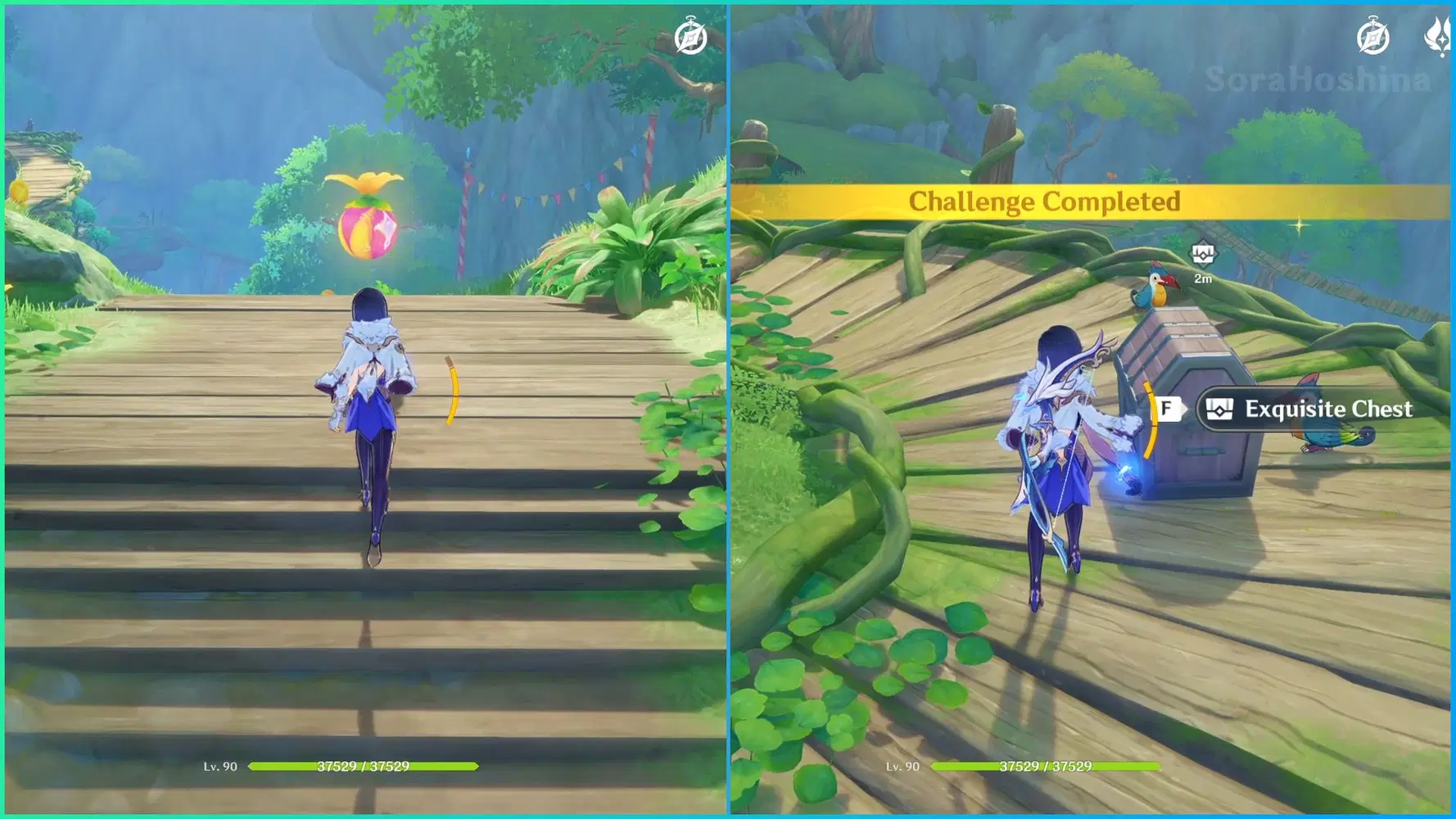 109. After that, turn around and walk to the Hydro Eidolon also on top of the tree. Use the Four-Leaf Sigils to go to another tree in front of you and interact with the quivering Hydro Eidolon until the end to spawn a treasure chest.