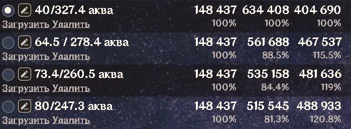 Запишем итоговое значение и далее, не меняя крит массу артов (кш*2+ку) и не меняя значений саб статов, начнем увеличивать крит шанс и уменьшать крит урон, устремляя их соотношение к 1/2.
