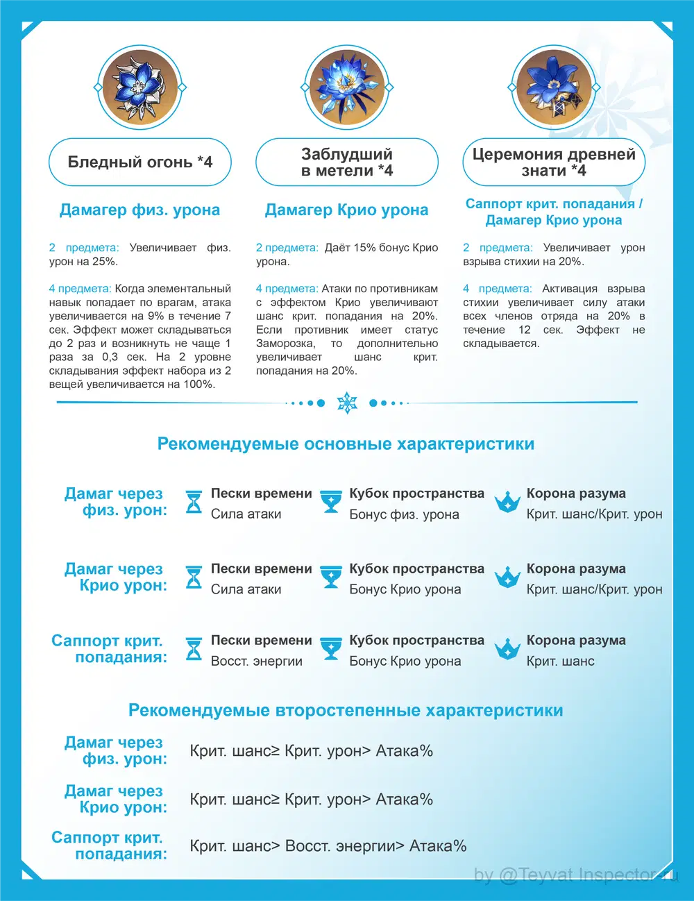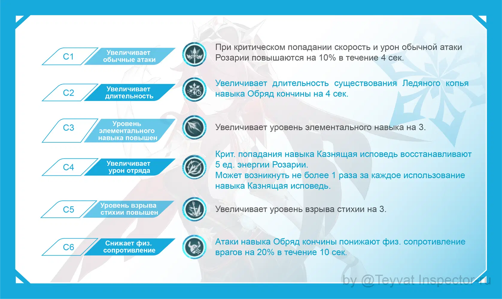 ③ Элементальный навык, поражая врагов, наделяет на врагов слабую Крио инфузию.