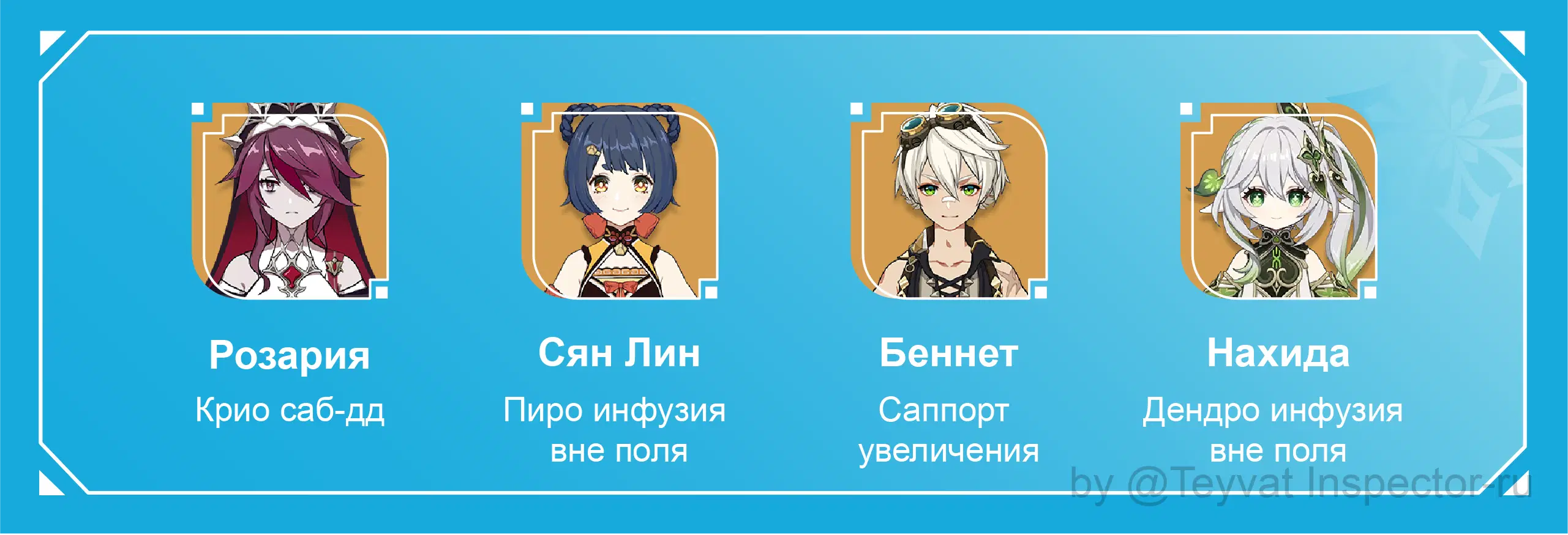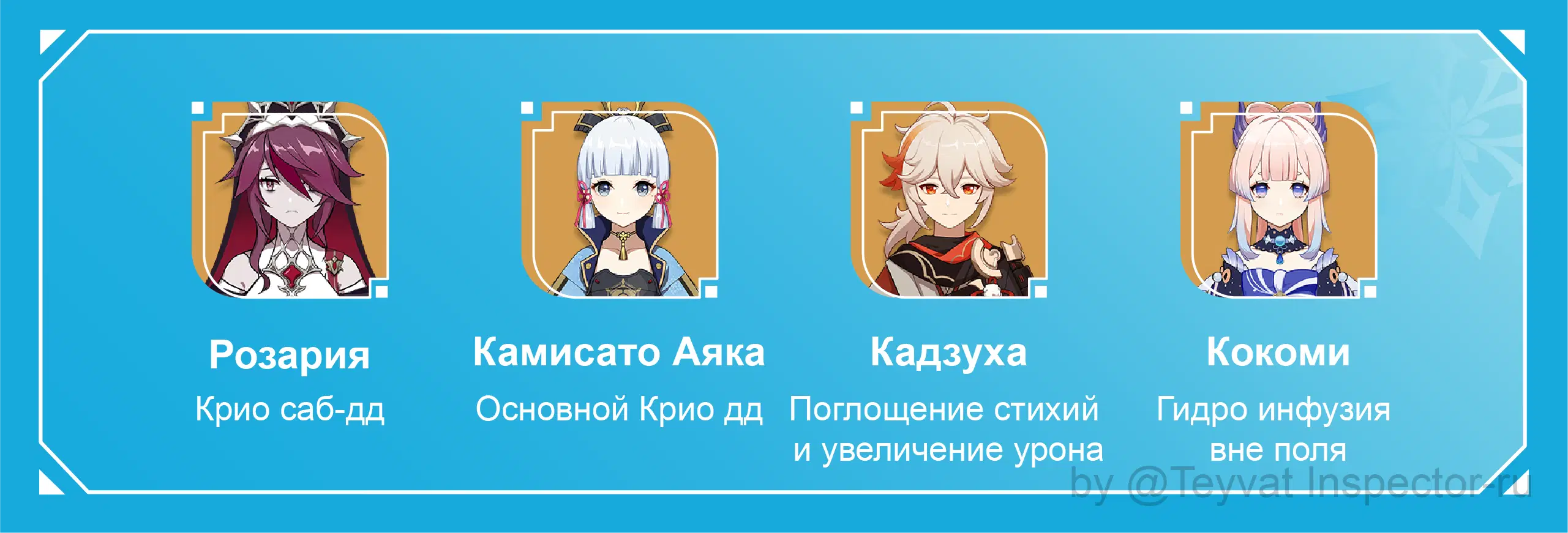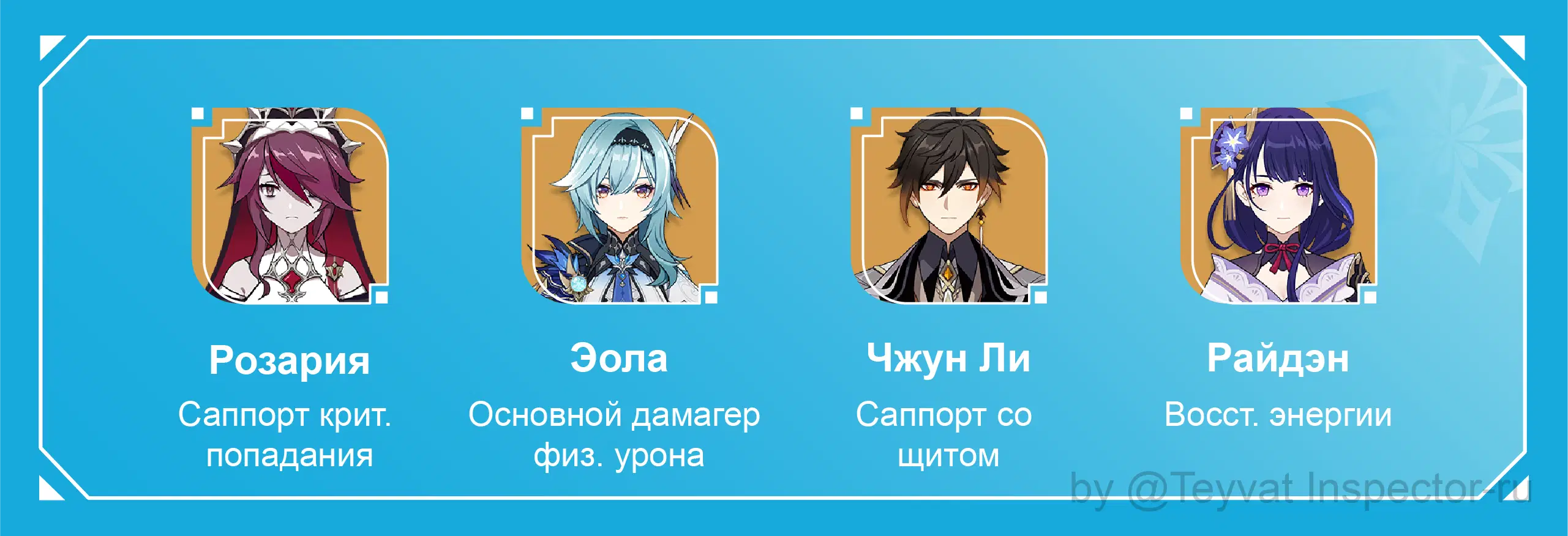 Саппорт крит. попадания, Дамагер физ. урона, Крио саппорт восст. энергии, Саб-дд вне поля