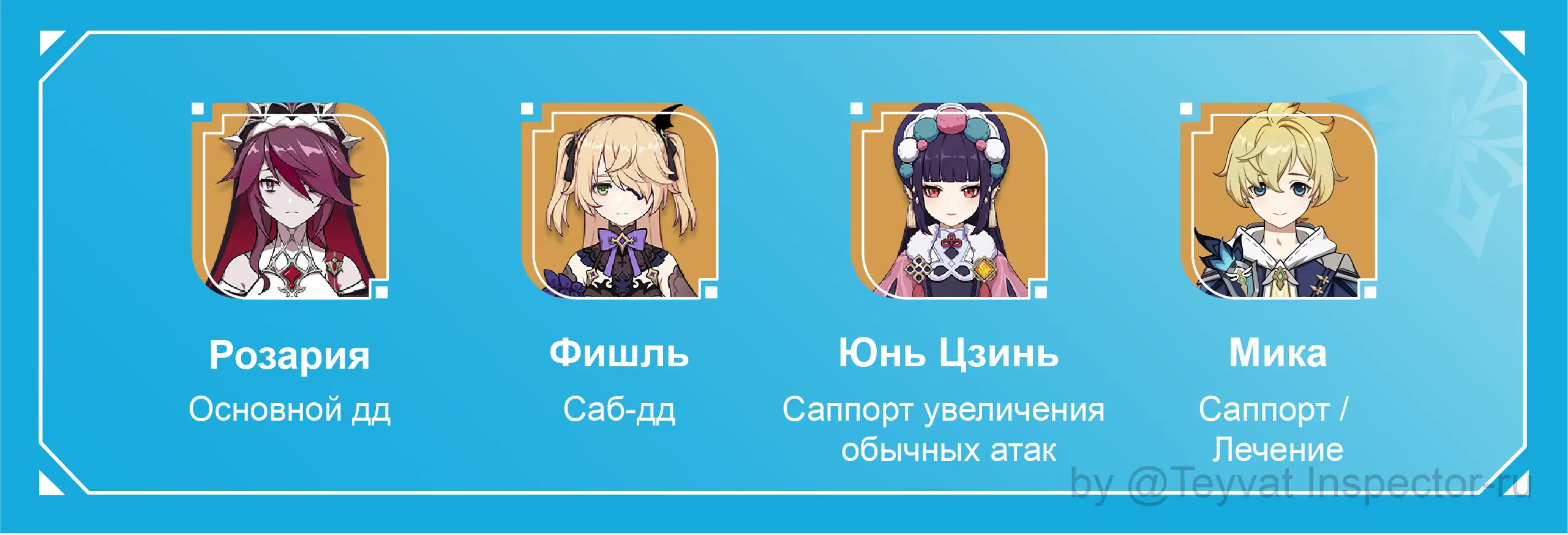 Розария E - Фишль E или Q - Юнь Цзинь Q - Мика QE - Розария Q + A
