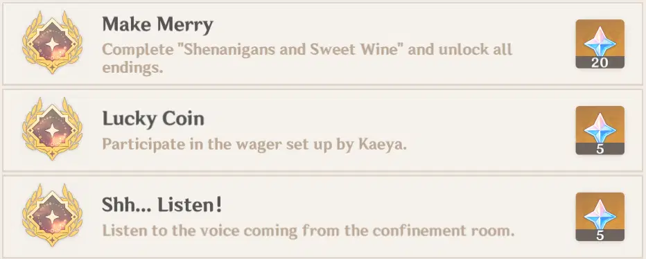 - Complete Kaeya's Story Quest - Pavo Ocellus Chapter: Act I "Secret Pirate Treasure".