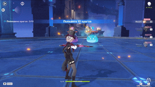 · Уровень заряда 2: выпускает стрелу-реквизит, которая наносит Пиро урон и при попадании вызывает Хохочущего котошляпа.