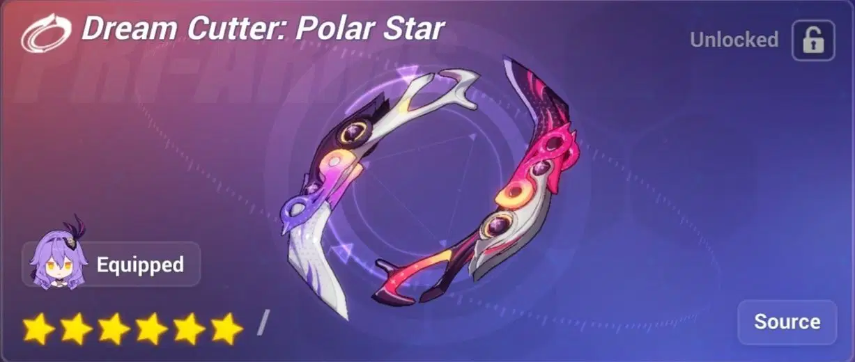 Sirin’s signature weapon is the chakram type weapon named Dream Cutter. It has a PRI-ARM named Dream Cutter: Polar Star. The weapon provides Fire DMG and Ignite DMG buffs as well as SP recovery for her. When Sirin wields the weapon, she gets additional Ignite stacks, which in turn increases her ultimate DMG. The weapon also allows Sirin to deal additional attack after casting special active skills Cut and Join.