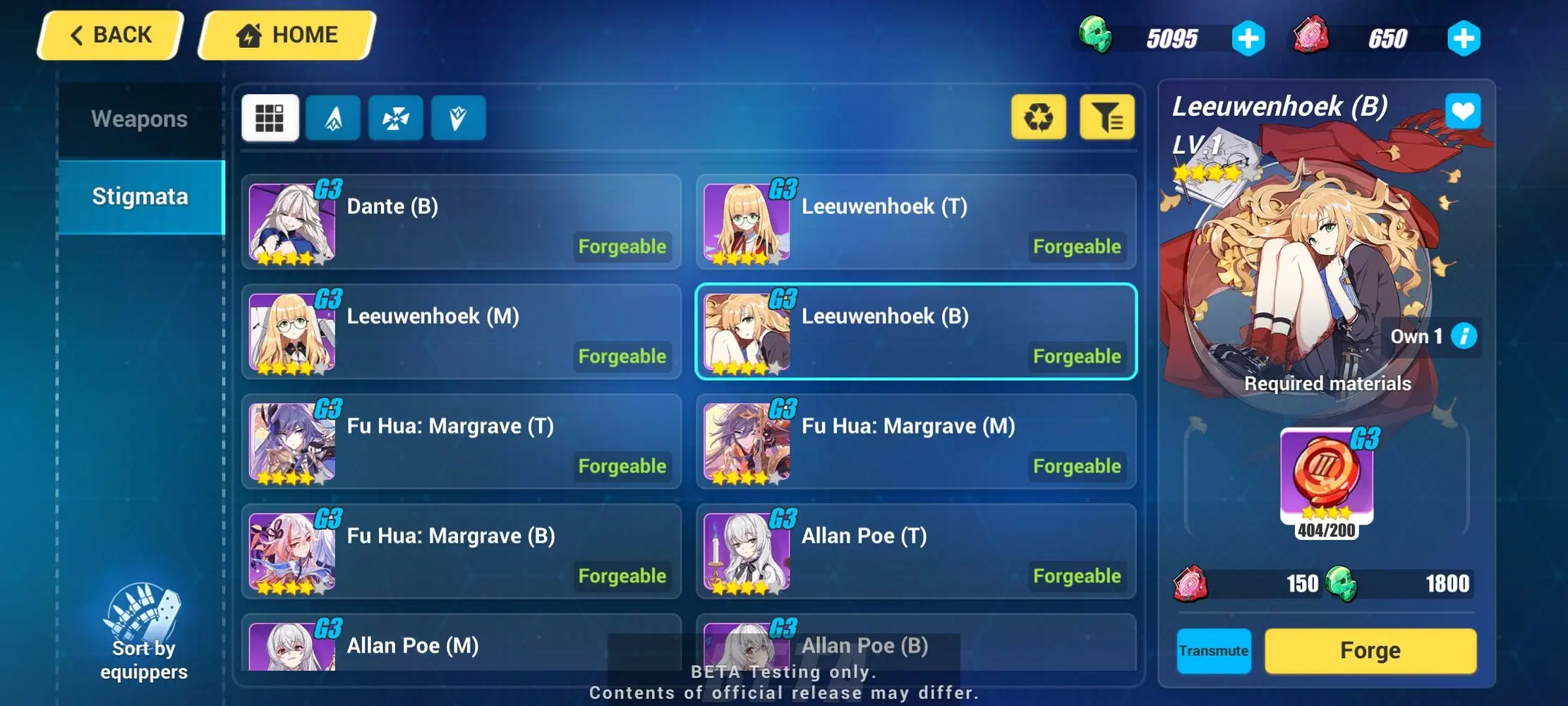 Additionally, Sirin’s signature stigmata, Little Joys set, is farmable as G4 stigmata and can be obtained by transmuting Leeuwenhoek in Foundry. One Little Joys piece costs one Leeuwenhoek piece, 140 Pure Red Crystalyte, 200 Spatial Convectron, and 1100 Ether Fuel. With the arrival of Little Joys set in version 6.9, Leeuwenhoek can now be directly crafted without transmuting from Thales. To directly craft one Leeuwenhoek piece, captains have to prepare 200 Chasmic Red Crystalyte, 150 Spatial Convectron, and 1800 Ether Fuel.