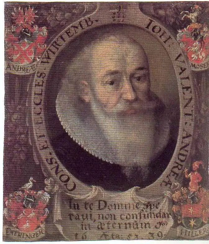 Был один лютеранский богослов - Иоганн Валентин Андреэ. Чем-то прям выдающимся он не отметился. Валентин Андреэ писал сатирические пьесы, религиозные трактаты, повести, элегии, эпиграммы и другие стихотворения и поэмы на (по большей части) латинском и немецком языках, причём латинский текст настолько разнообразен и богат художественными приёмами, что до сих пор представляет большую сложность для перевода. В целом, тогда таких текстов было достаточно много.