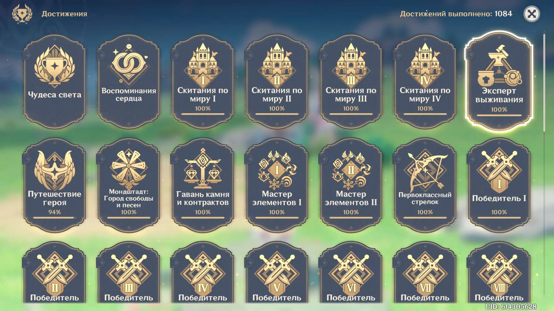 Достижений у меня 1084 из 1095, то есть не получено 11 достижений. Это достижение за 800 артерий, за статую/фонтан в Фонтейне и несколько за дейлики.