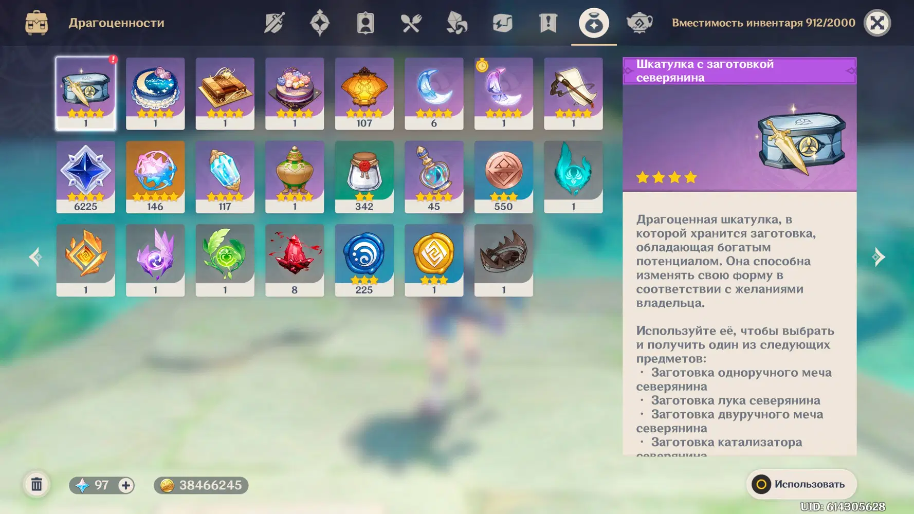 Про ресурсы сказать особо нечего - там все скучно, их количество только растет. Книжек опыта тысячи, а кристаллы прокачки оружия постоянно упираются в лимит 9999 и летят в корзину. Кстати, отдельно передаю привет тем, кто говорил, что это изобилие не вечно и что ресурсы у меня закончатся. В прошлом году у меня было 22 миллиона моры, а сейчас больше 38 миллионов.