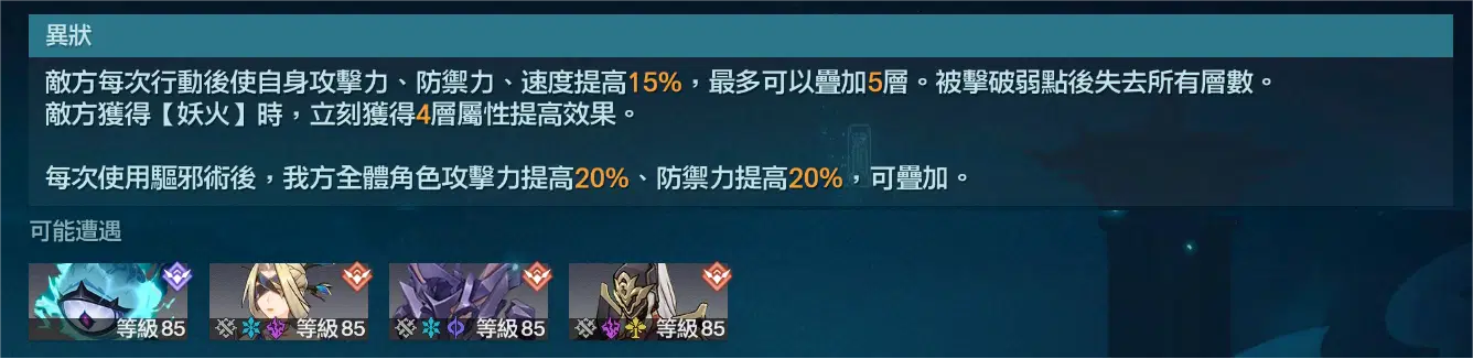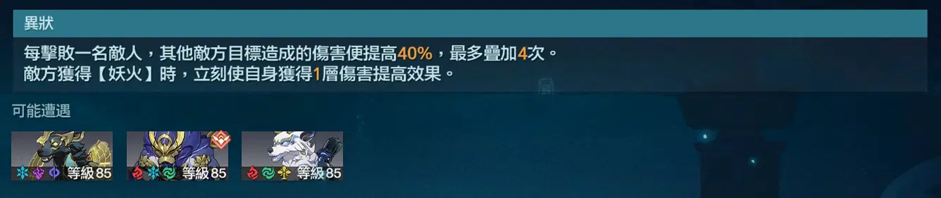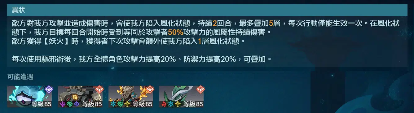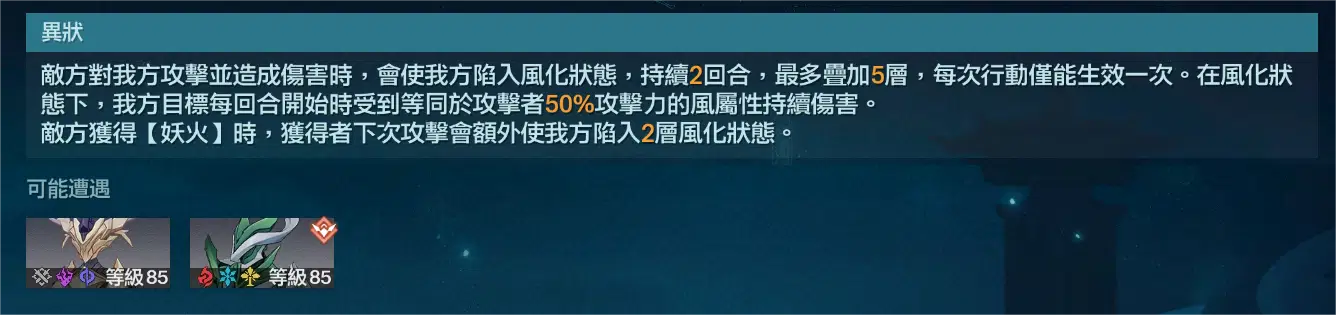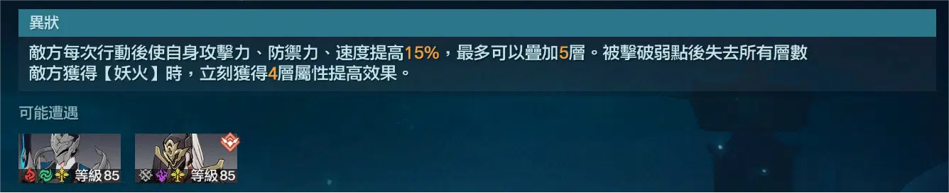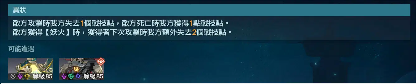 2.如果【妖火】到達行動序列頂部時為敵方行動回合,【妖火】會大幅提高敵人的傷害!千萬要注意不要讓敵方獲得【妖火】!