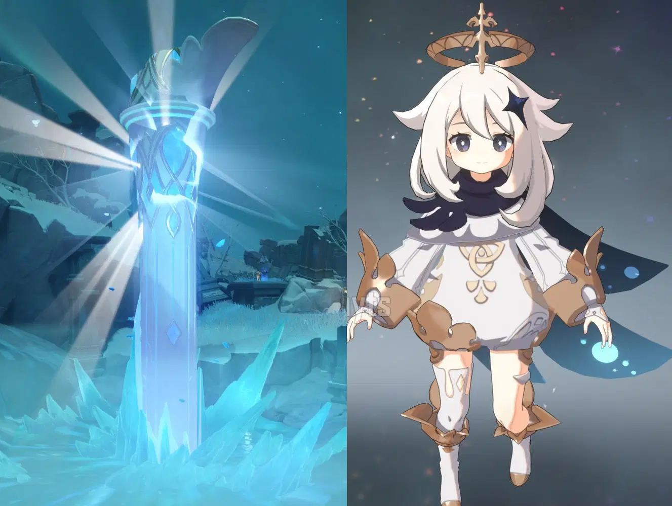 Самое первое, что привлекает внимание это костюм консервы. Весь наряд построен на элементах небесных шипов (статуи архонтов), а как мы знаем такой архитектурный стиль присущ исключительно Селестии, так что я твердо и чётко заявляю, что Паймон родом оттуда, имеет некую "божественность" , и как норны жила у подножия Иггдрасиля, в смысле Ирминсуля (Тейват расположен в корнях).