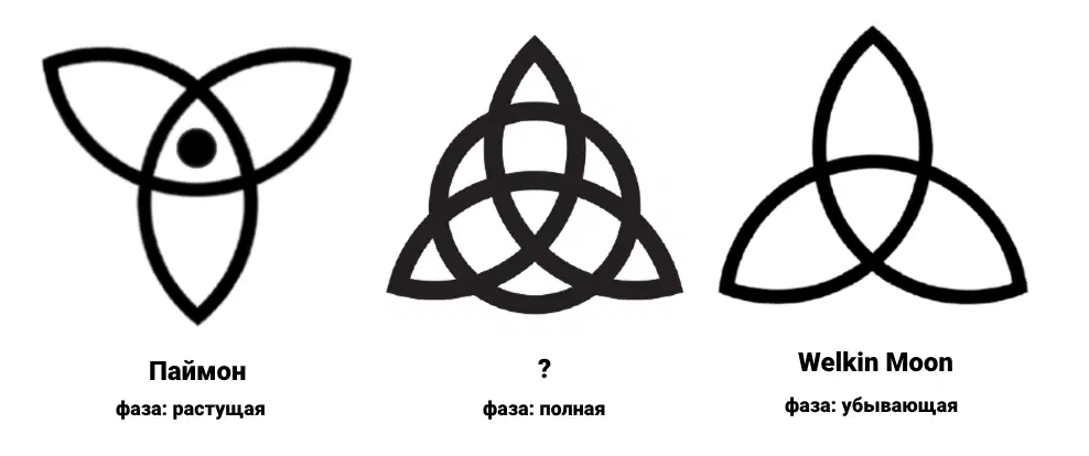Учитывая, что образ местных лунных богинь одинаков, да и Паймон позволяет доставать предметы из коробок с другими трикветрами и даёт возможность пользоваться кристаллами сотворения, то я останусь при мысли и вере, что Паймон изначально была единым богом, которая по какой-то причине выбрала форму трёх Лун.