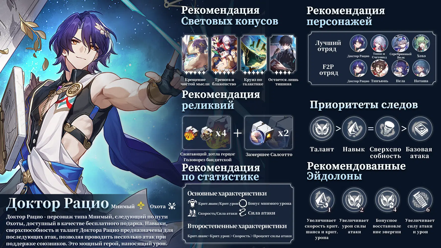 На этот раз для первопроходцев я подготовил инфографическое руководство о Докторе Рацио в баннере второй половины V1.6. Надеюсь, с помощью этого краткого обзора все смогут быстро понять этого прямолинейного и уверенного в себе профессора!