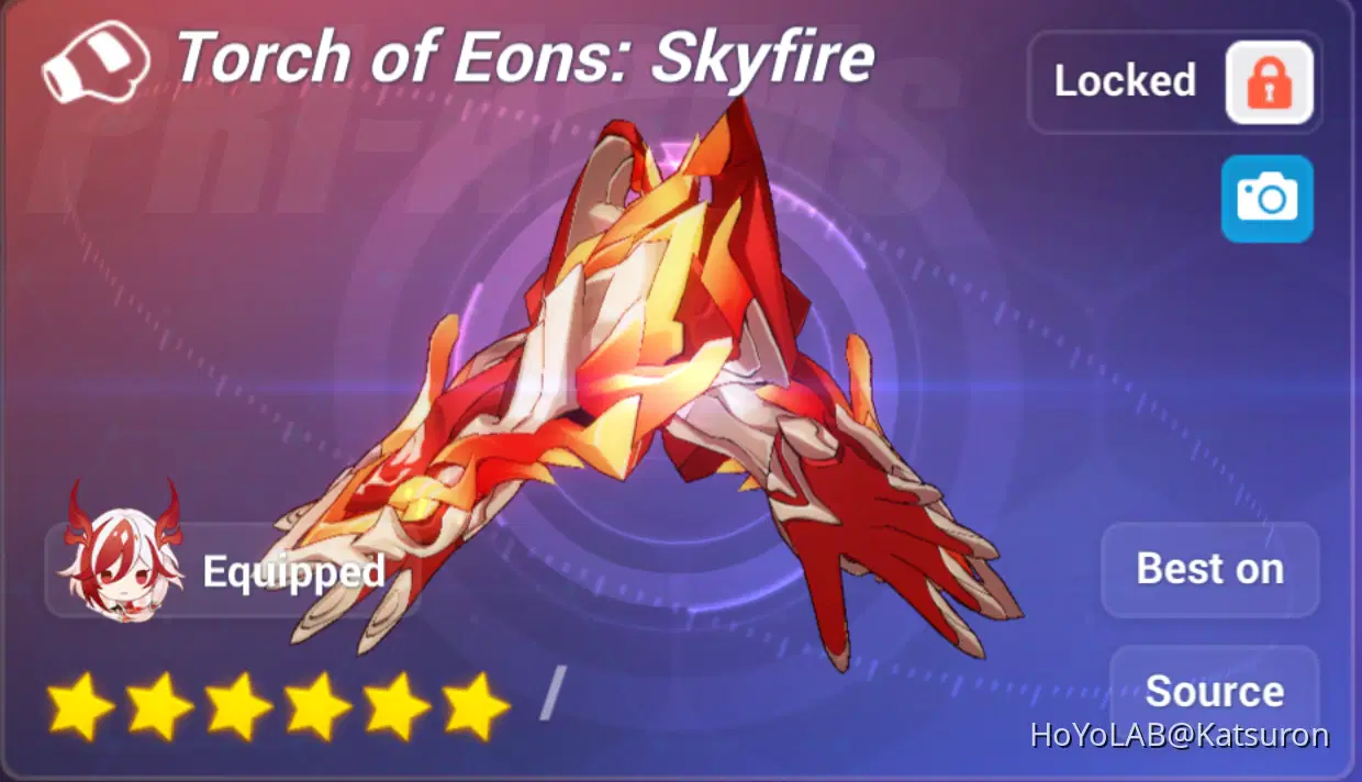 Срабатывает, когда враг под действием поджигания или замедления/перелома времени. Наносит урон от огня 1500% и добавляет 3.5 очка поджога, вызывая Time Fracture на 3 секунды и восстанавливая 180 зарядов [Starry Faith]. Урон, получаемый врагами от поджога, увеличивается на 12%, также восстанавливается 10 единиц SP, длительность баффа 15 секунд, повторное активирование обновляет длительность.