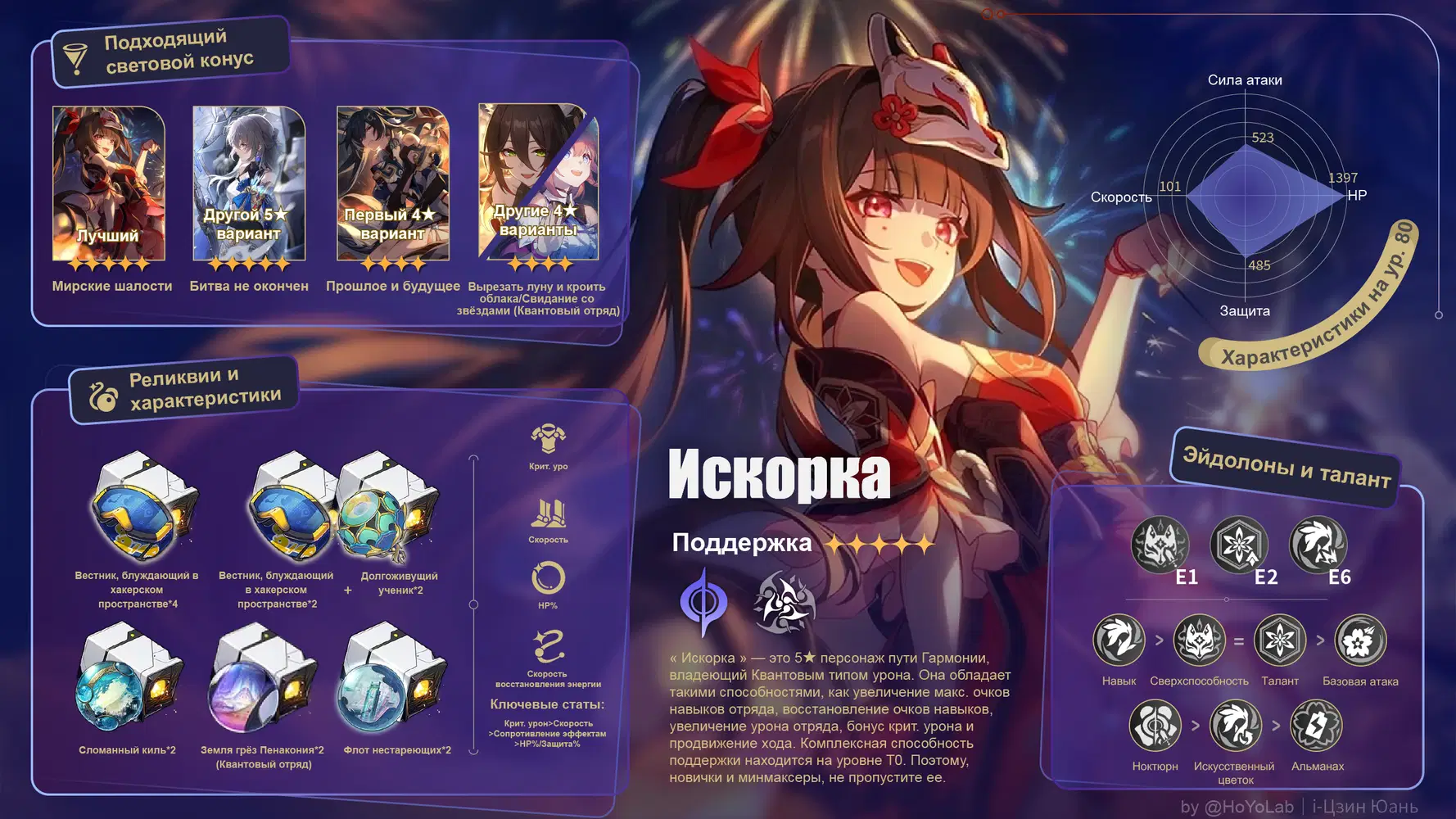 Если у вас есть отряд Квантового типа и отряд Дань Хэн: Пожиратель Луны, первым выбором будет Искорка; если у вас есть собранный мейн дд, и вы хотите еще больше увеличить лимит отряда, первым выбором будет также Искорка.