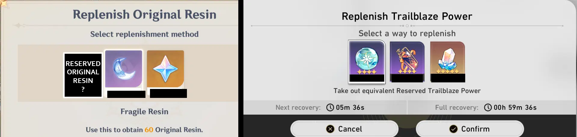 P.S.: No, condensed Resin is not the way to go and it's not "another option". It has a cap of 5 and it utilizes Original Resin. I'm really thinking of something exactly the same as Reserved Trailblaze Power, but in the Genshin world.