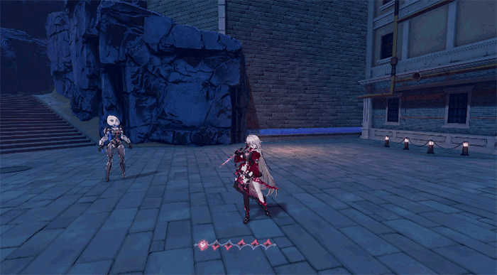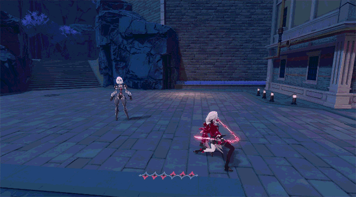 While on the ground, hold [ATK] to let Mad Pleasure: Shadowbringer perform an upward thrust. While in the air, hold [ATK] to let Mad Pleasure: Shadowbringer perform a downward cleave. She will recover Banquet Enjoyment when hitting enemies with Combo ATK.