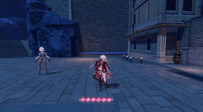 Mad Pleasure: Shadowbringer can have up to 6 points of Banquet Enjoyments. With full Banquet Enjoyments, tap [ATK] after evasion or jump to consume all Banquet Enjoyments and let Mad Pleasure: Shadowbringer trigger Moment of Indulgence, which pulls in enemies and deals Ice DMG to them.